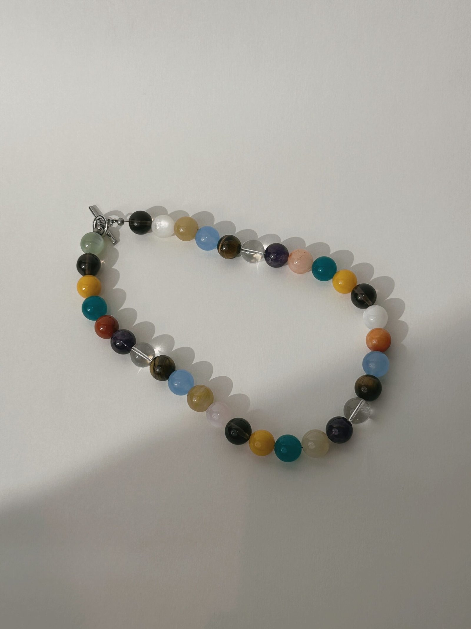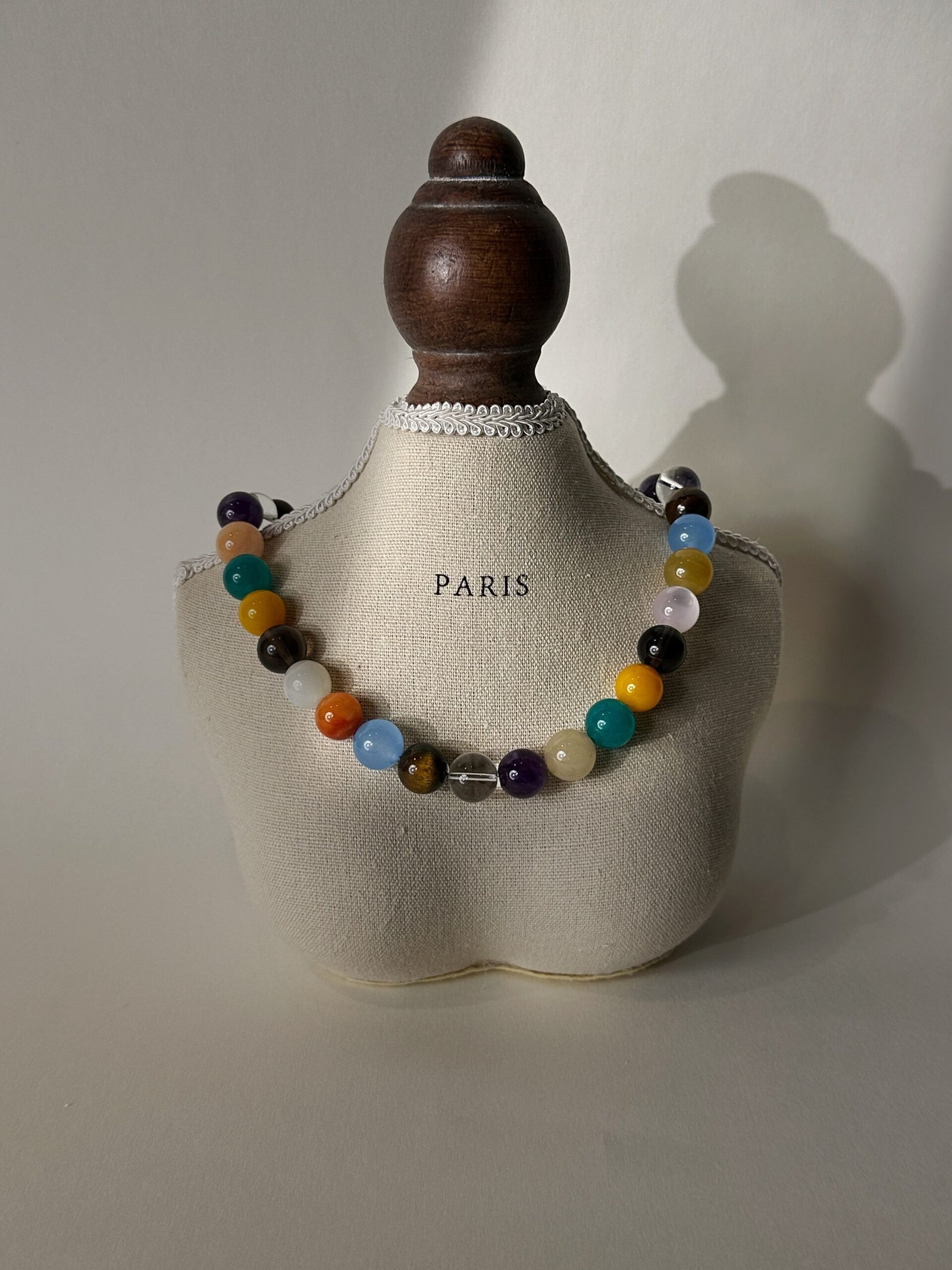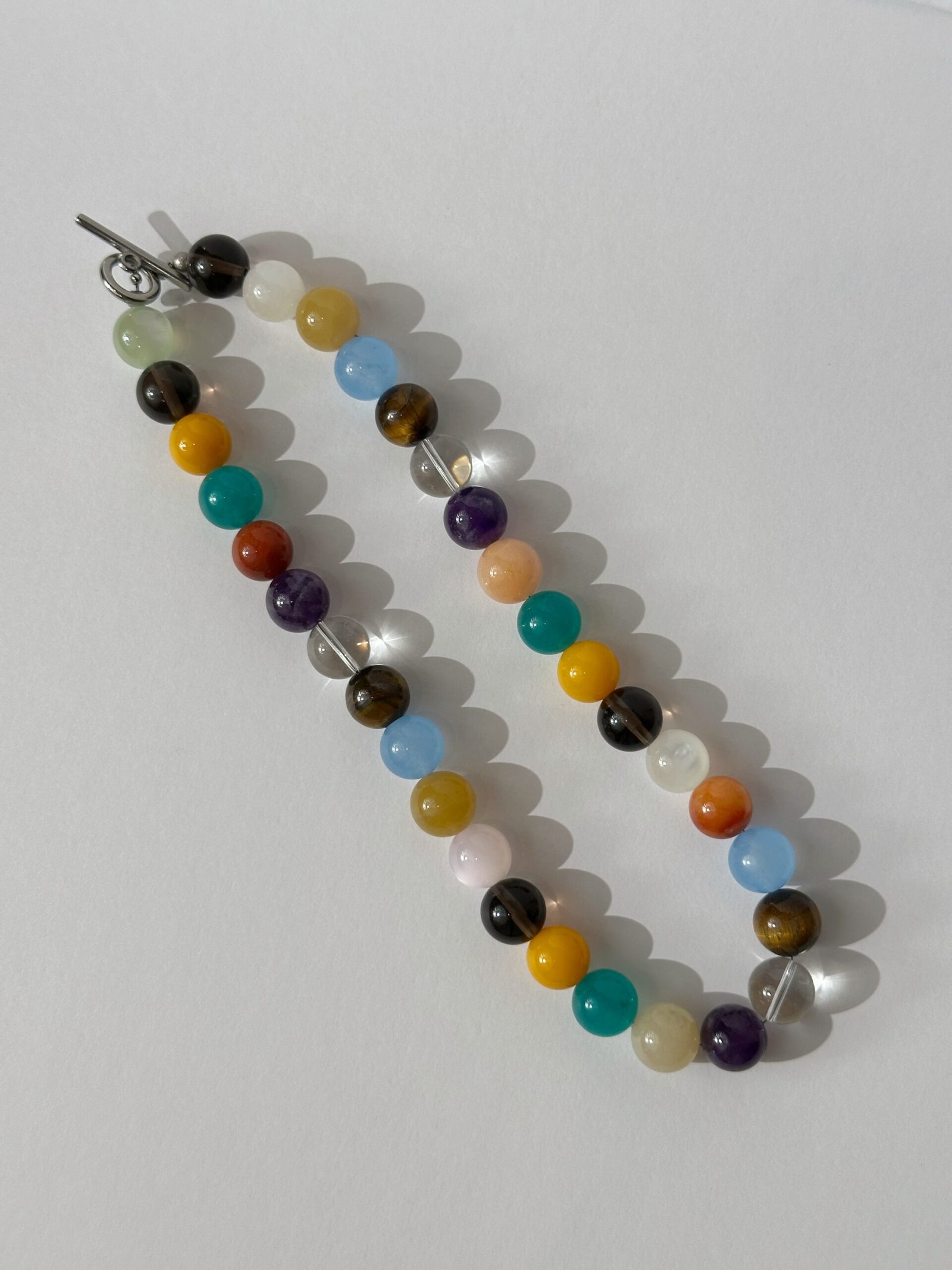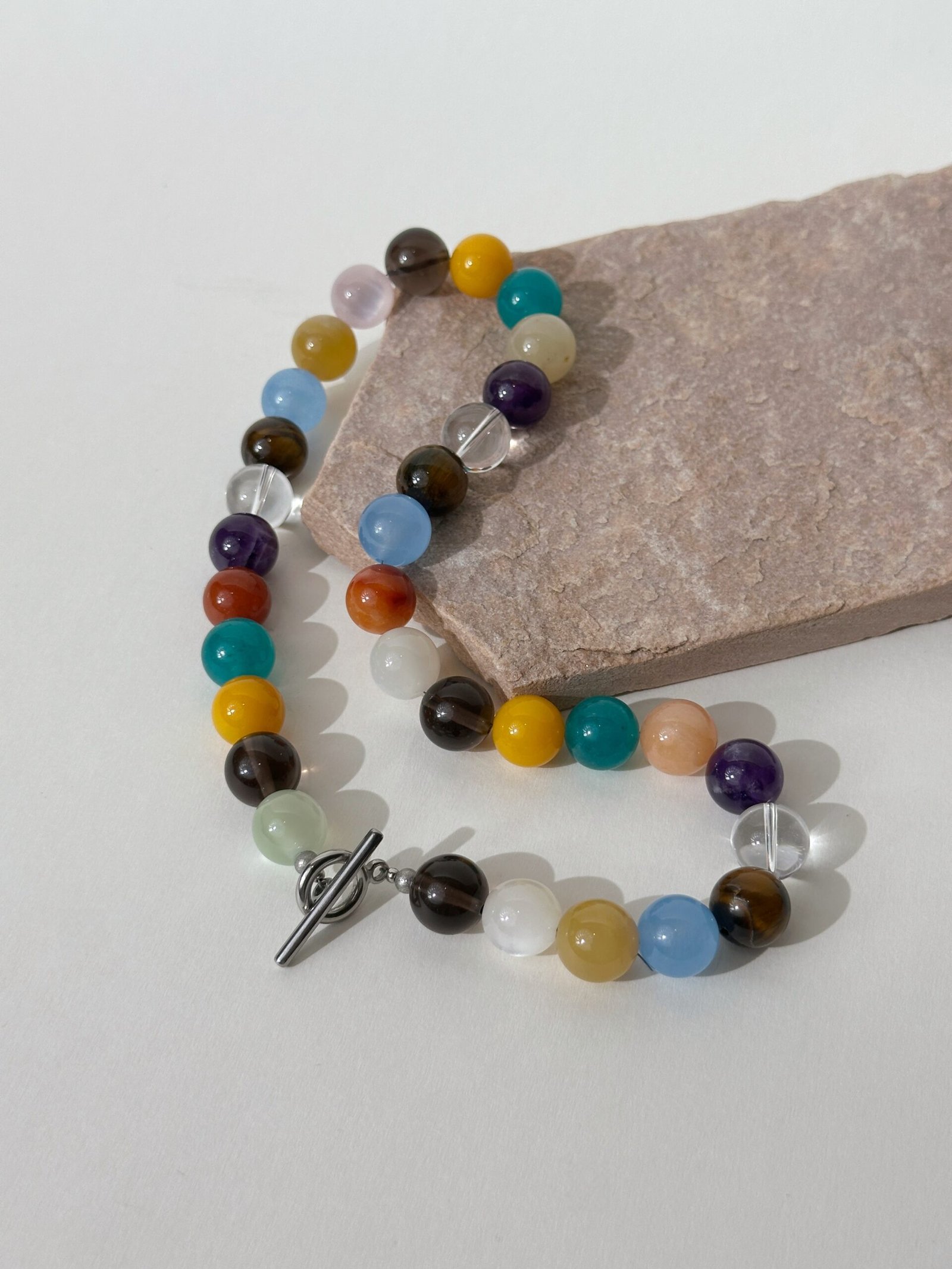 A manifesting tool necklace with 8 unique gemstones (12mm), each chosen for its specific properties to support your journey toward abundance, clarity, and emotional well-being.